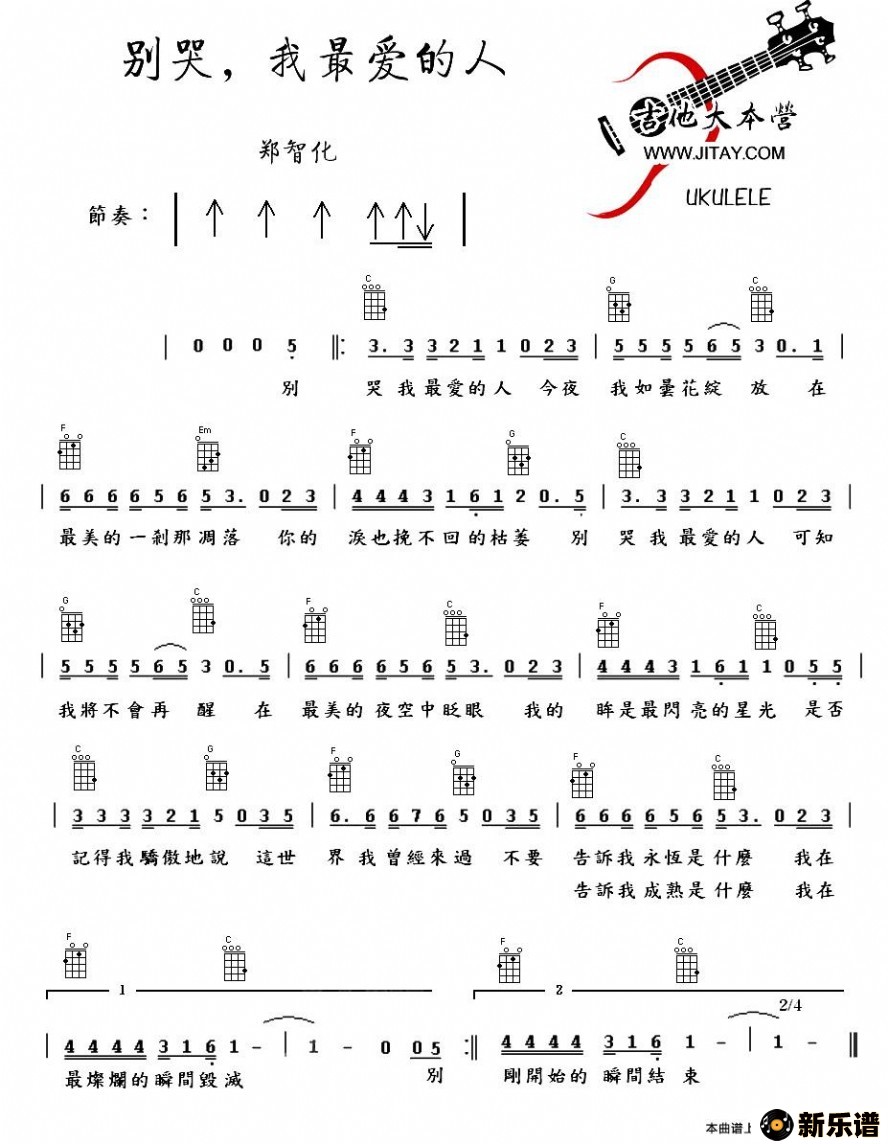 《别哭,我最爱的人》最新曲谱 郑智化
