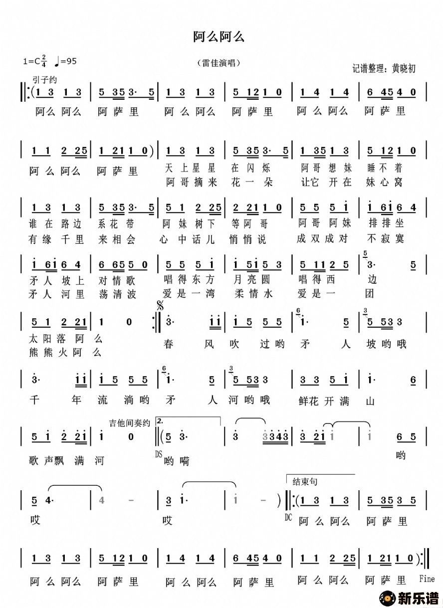 雷佳演唱的阿么阿么歌词,阿么阿么最新曲谱.