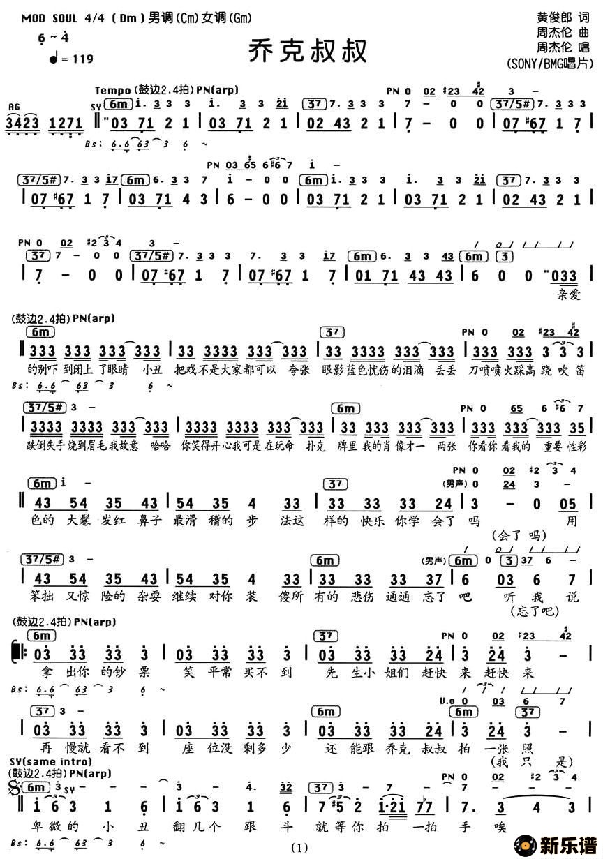 《乔克叔叔》最新曲谱 周杰伦