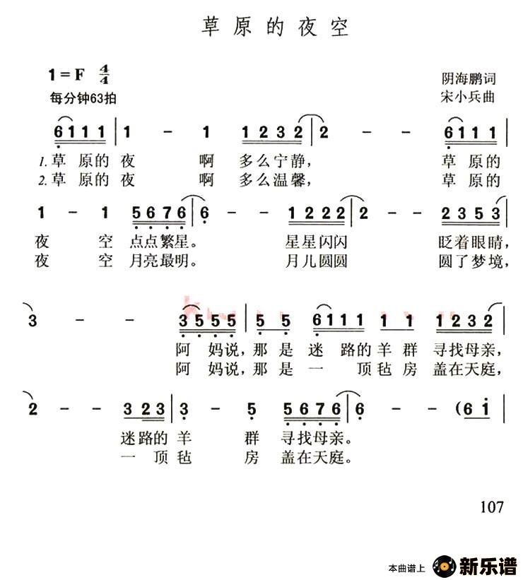 赵雯羽演唱的草原的夜空歌词,草原的夜空最新曲谱.