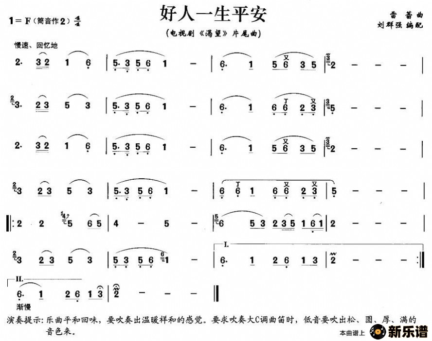 演唱的好人一生平安歌词,好人一生平安最新曲谱.