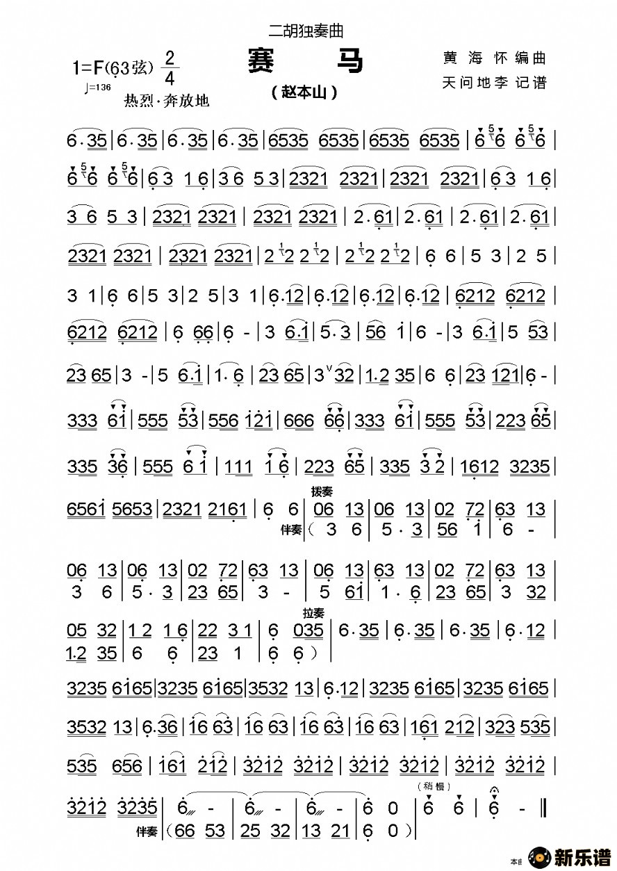 赵本山演唱的赛马歌词,赛马最新曲谱.