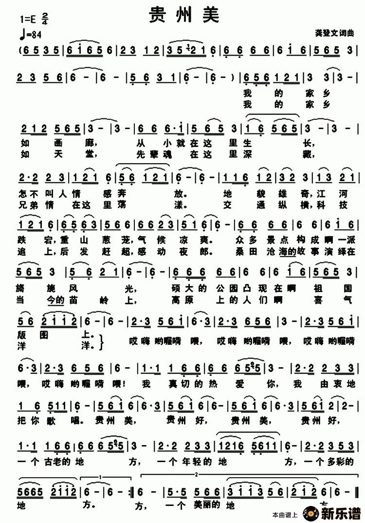 贵州美最新曲谱