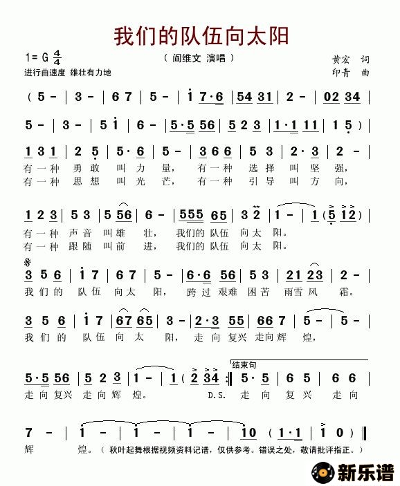 阎维文演唱的我们的队伍向太阳歌词,我们的队伍向太阳最新曲谱.
