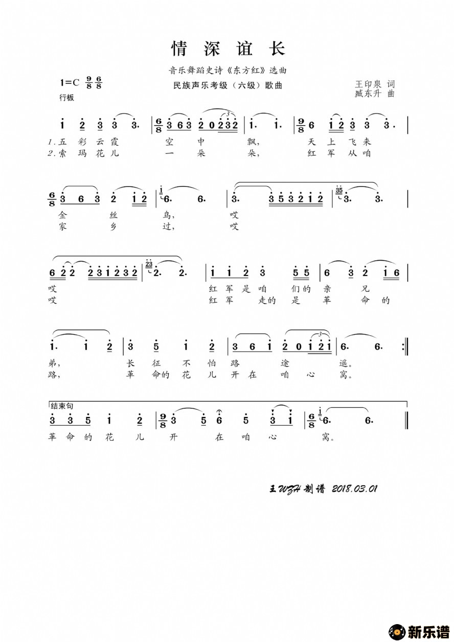 > 民族声乐考级歌曲:情深谊长最新曲谱