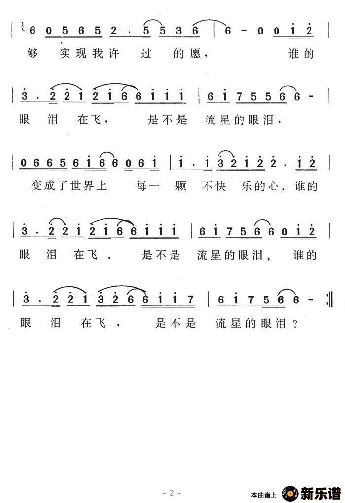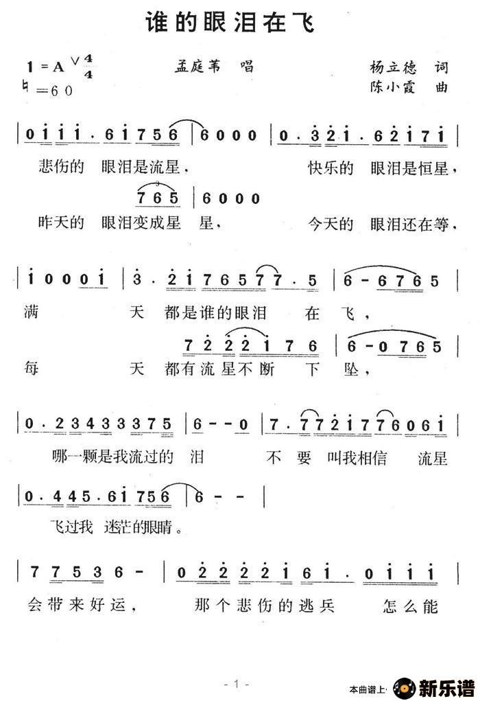 谁的眼泪在飞最新曲谱