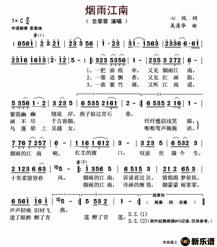 《烟雨江南》最新曲谱 云菲菲