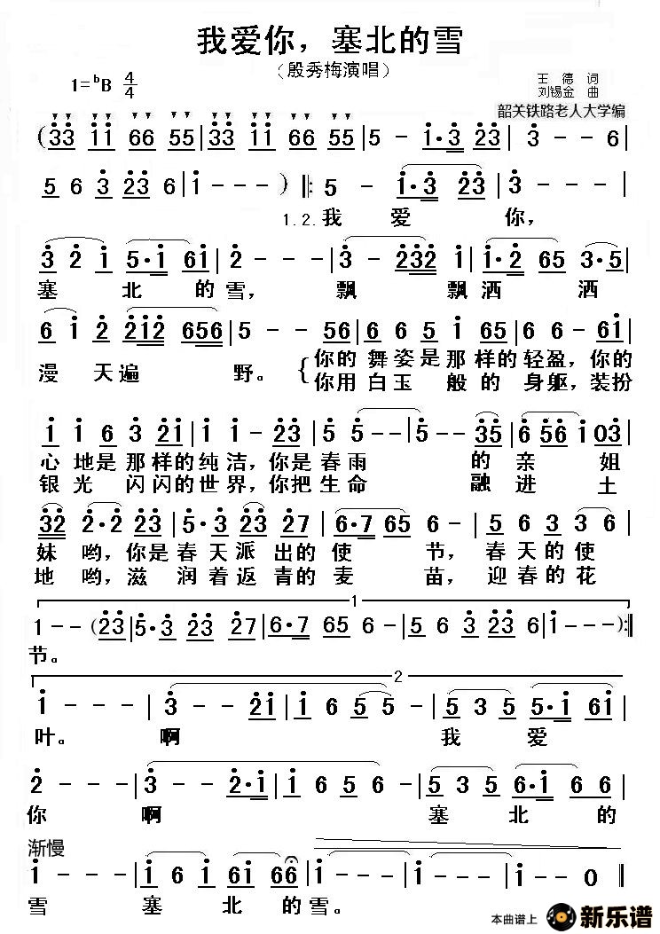 《我爱你,塞北的雪》最新曲谱 殷秀梅