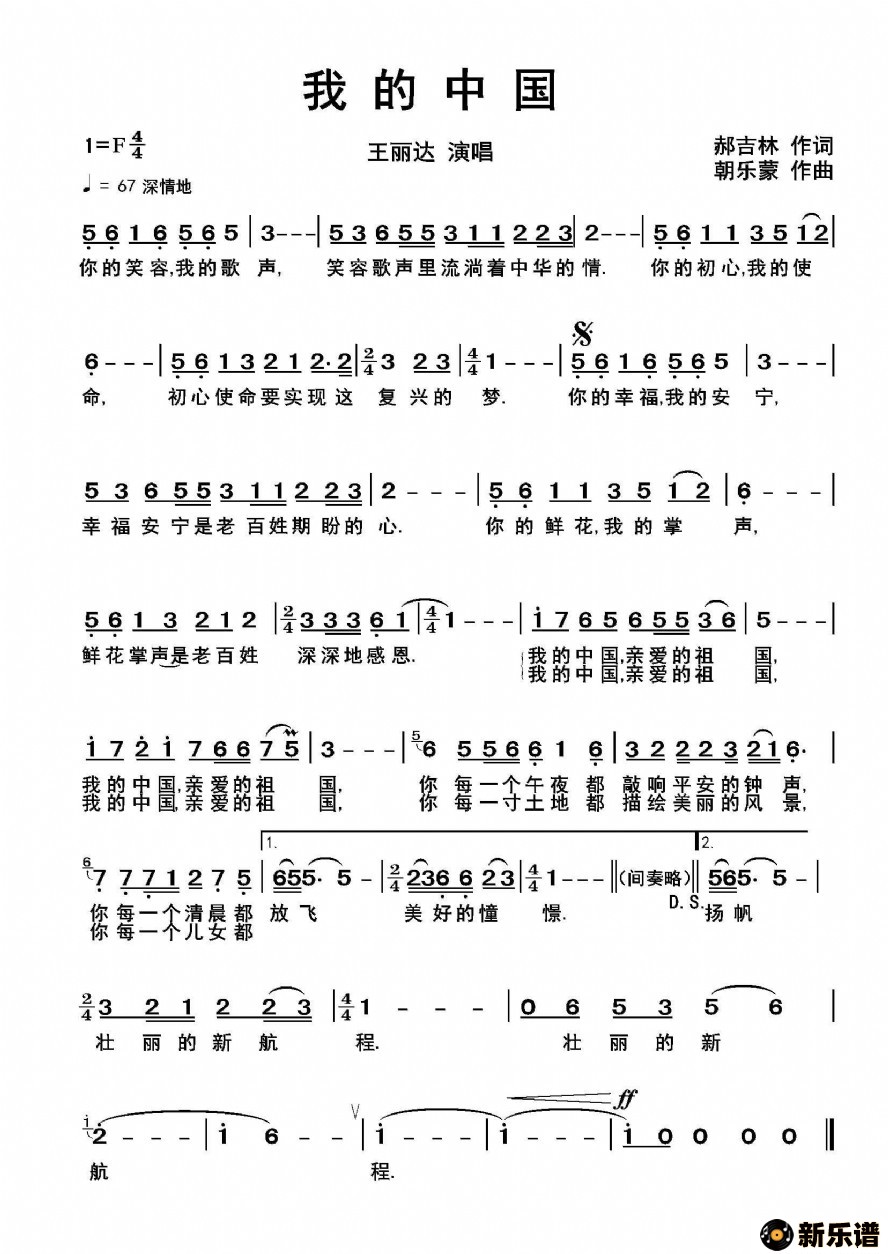 《我的中国》最新曲谱 王丽达