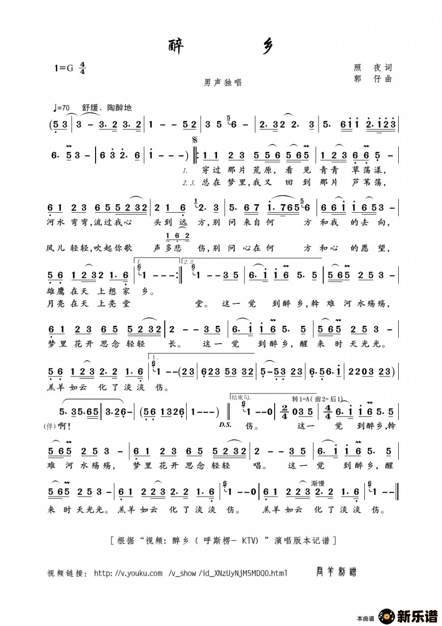 《醉乡》最新曲谱 呼斯楞-君羊制谱
