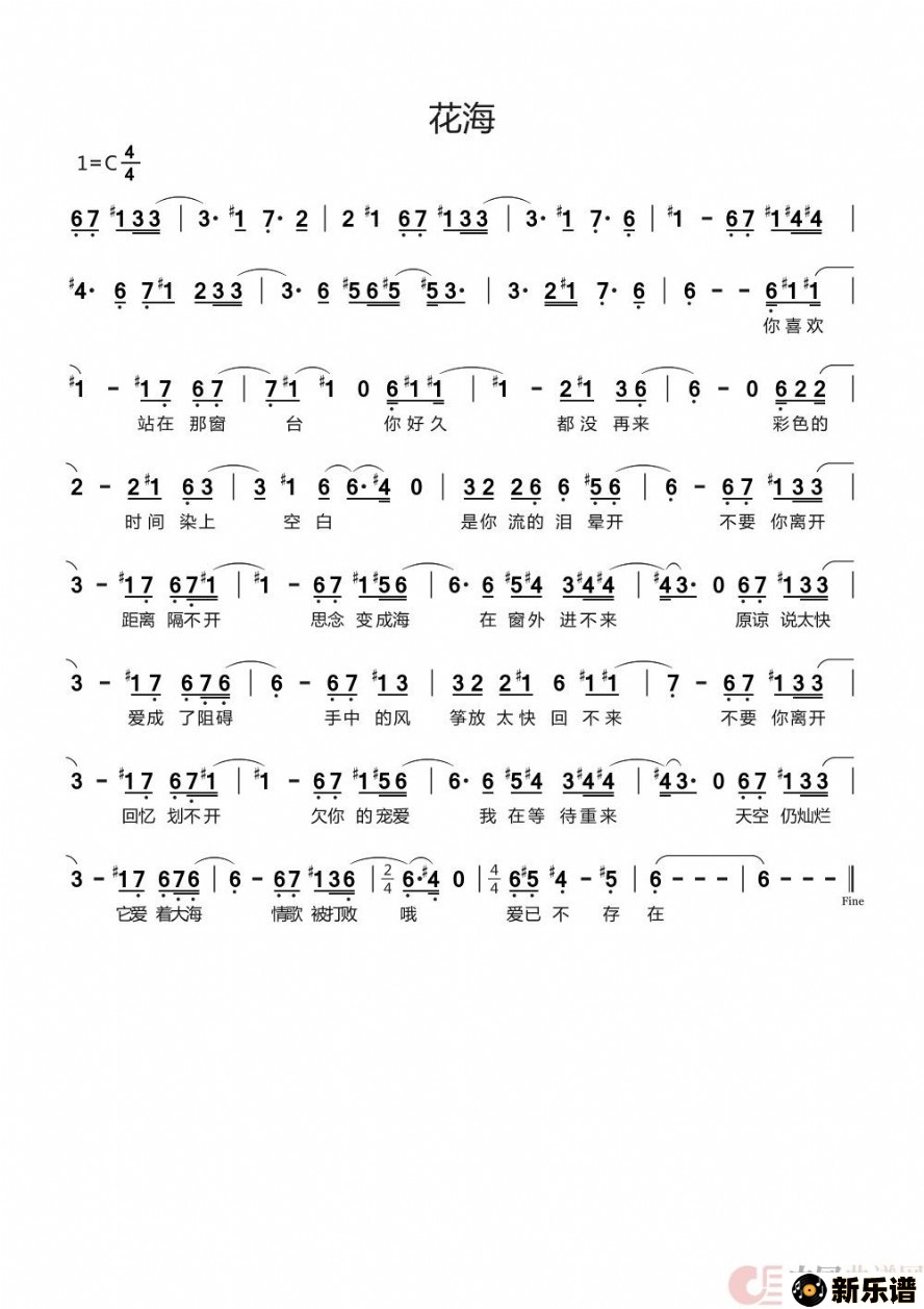 > 花海 c调转调最新曲谱
