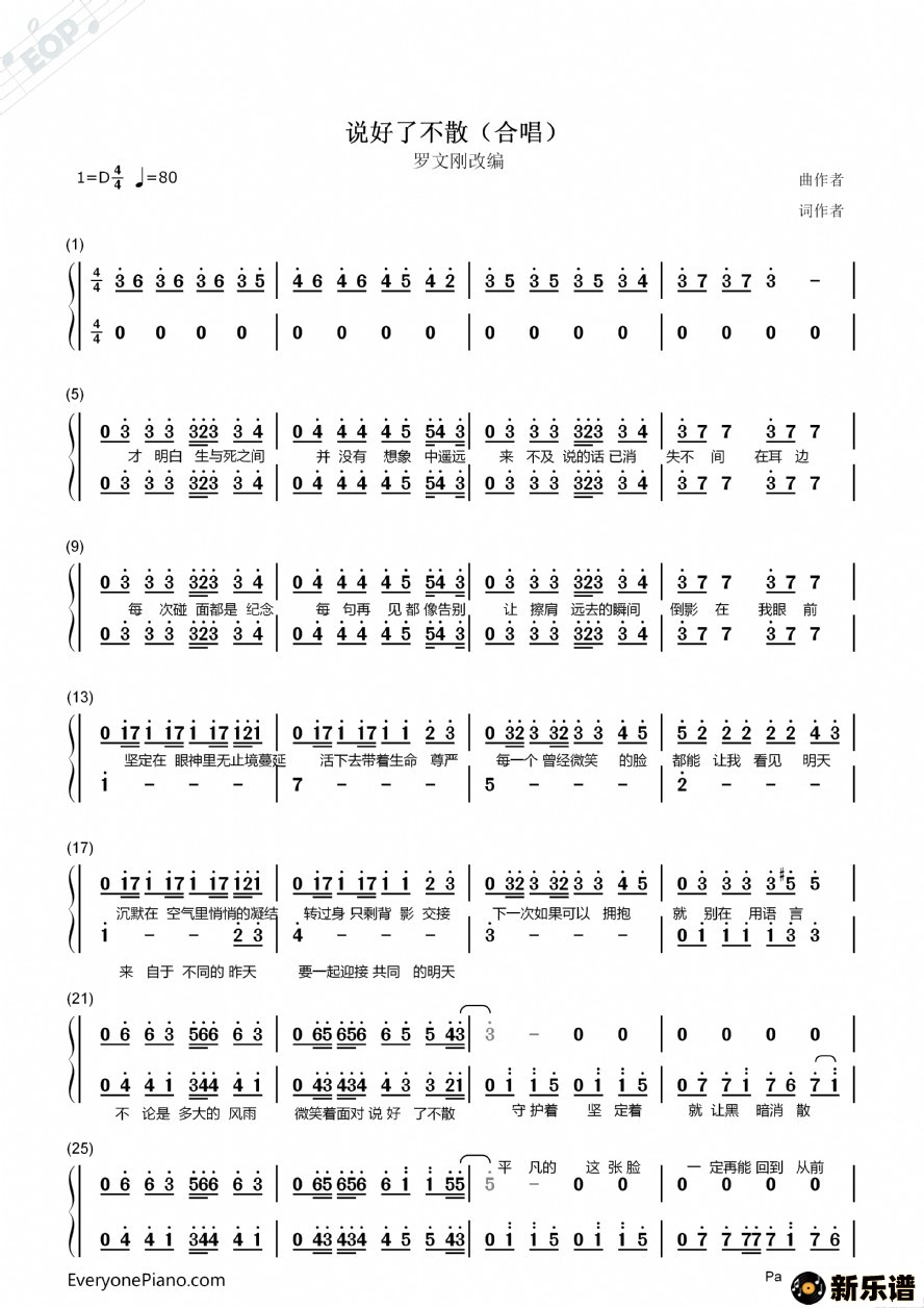 > 说好了不散最新曲谱