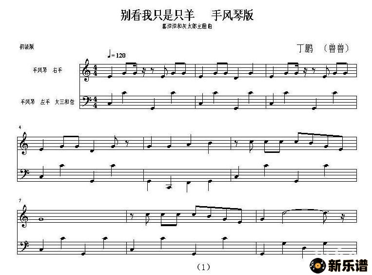 > 别看我只是只羊(《喜羊羊和灰太郎》主题曲)最新曲谱