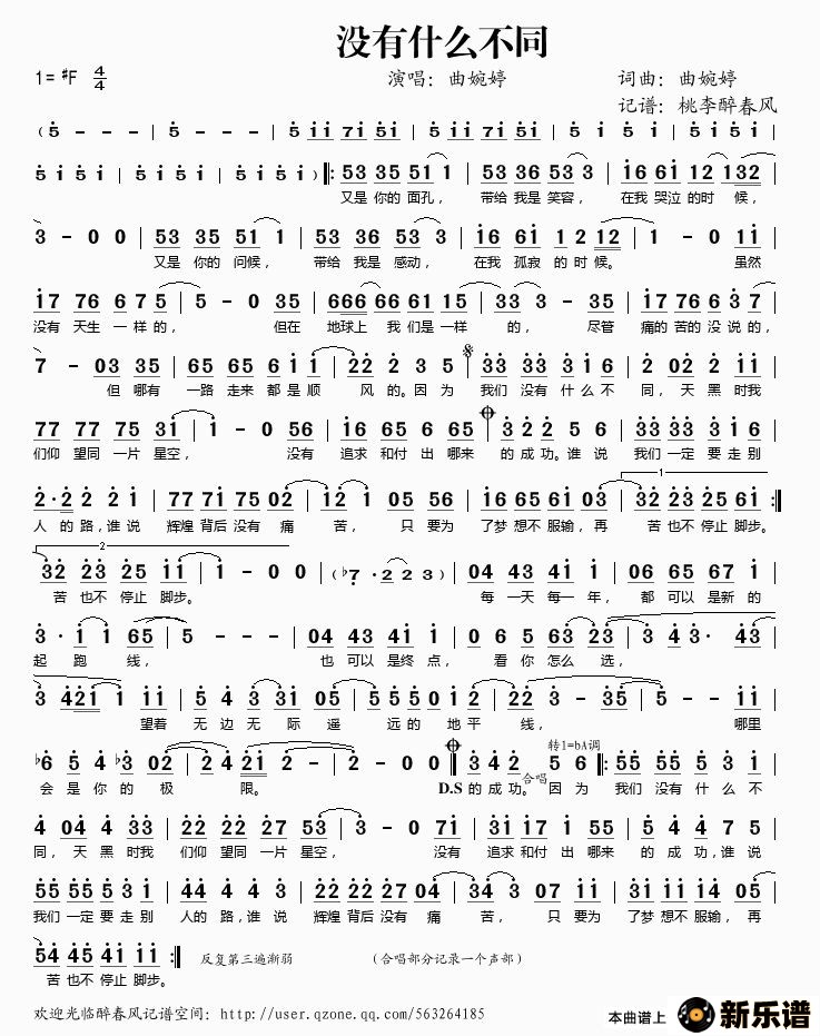 《没有什么不同》最新曲谱 曲婉婷-桃李醉春风制谱