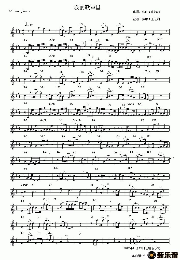 我的歌声里最新曲谱
