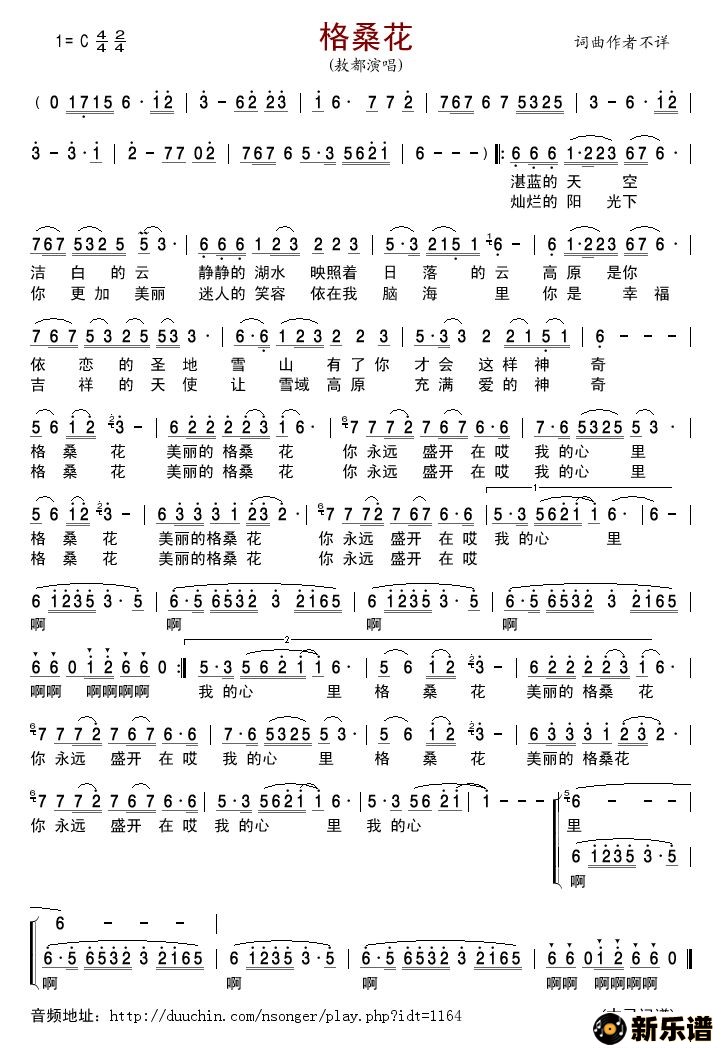 敖都演唱的格桑花歌词,格桑花最新曲谱.