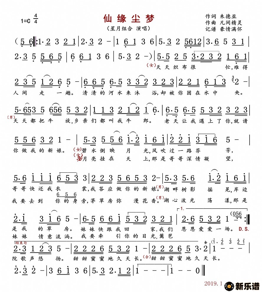 《仙缘尘梦》最新曲谱 星月组合
