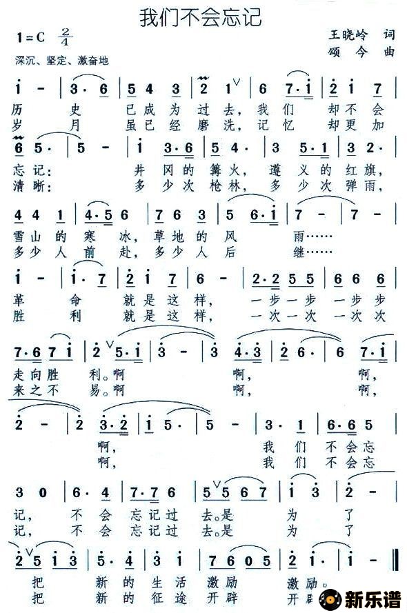 演唱的我们不会忘记歌词,我们不会忘记最新曲谱.