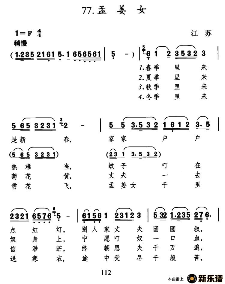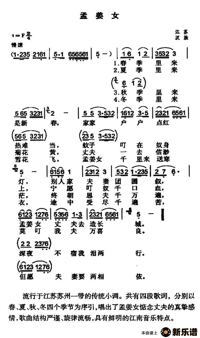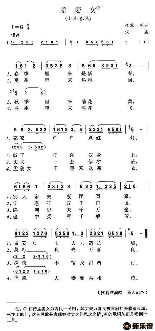 演唱的孟姜女歌词,孟姜女最新曲谱.