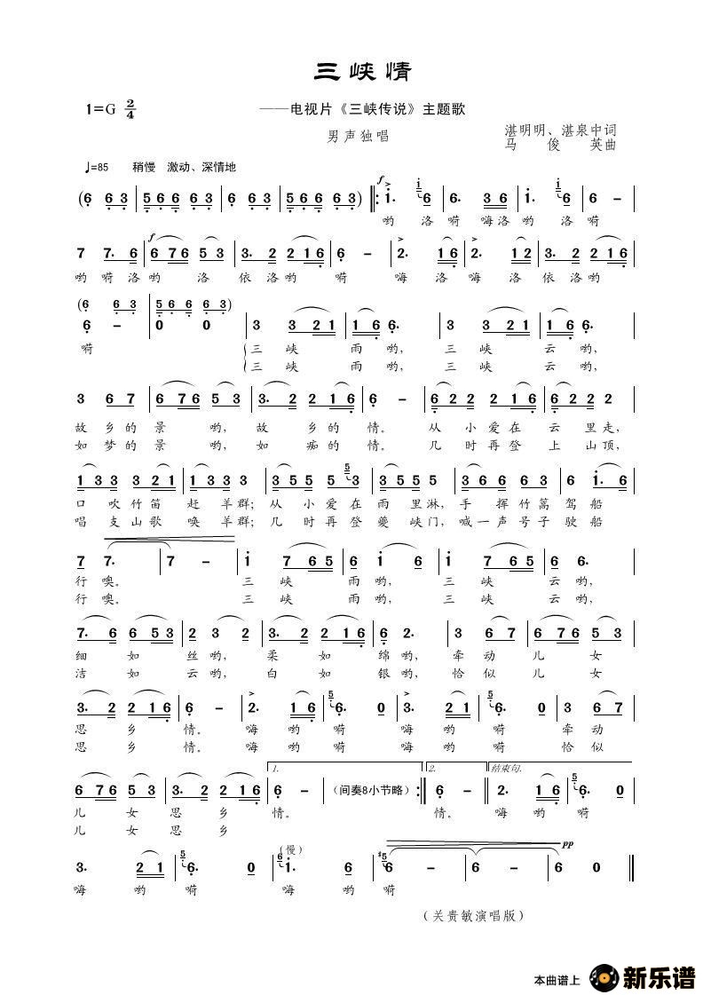 《三峡情》最新曲谱 关贵敏-君羊制谱