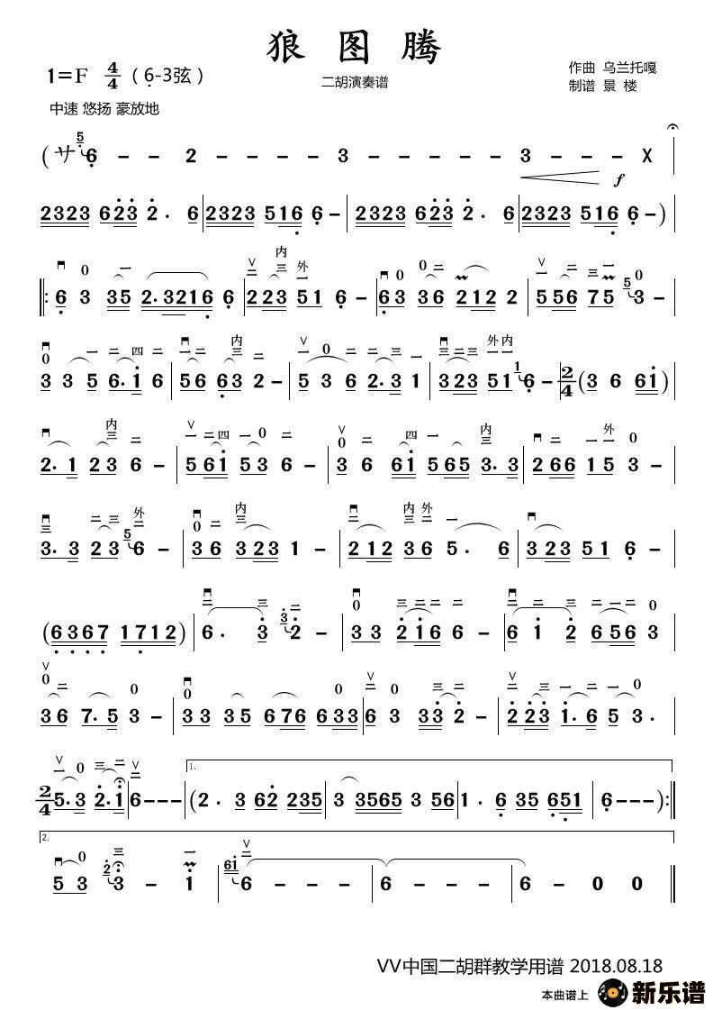 景楼演唱的狼图腾歌词,狼图腾最新曲谱.