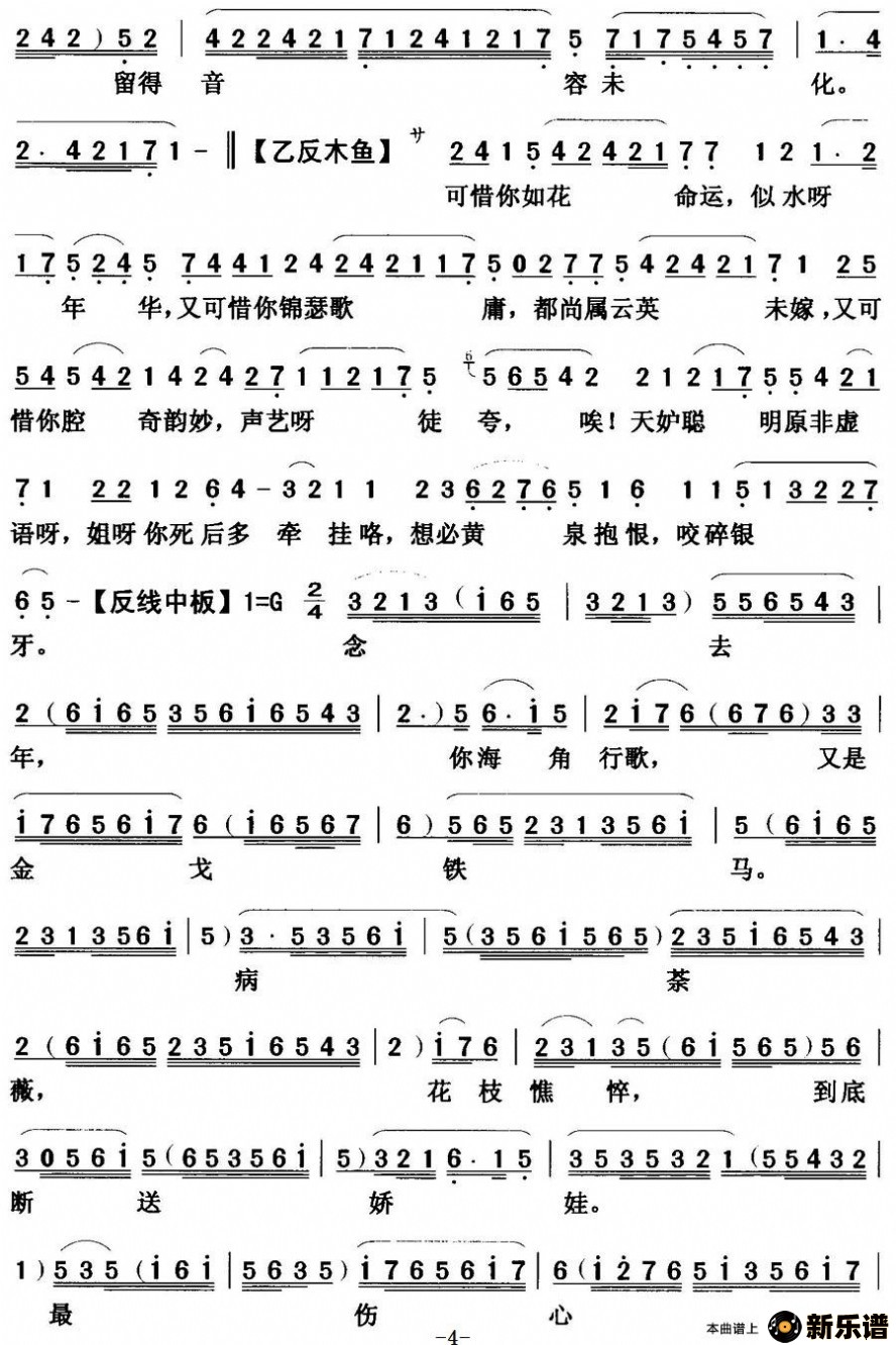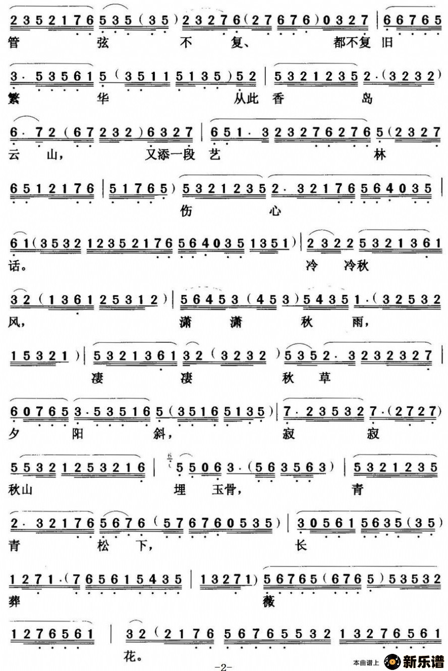 > 【粤曲】七月落薇花 最新曲谱