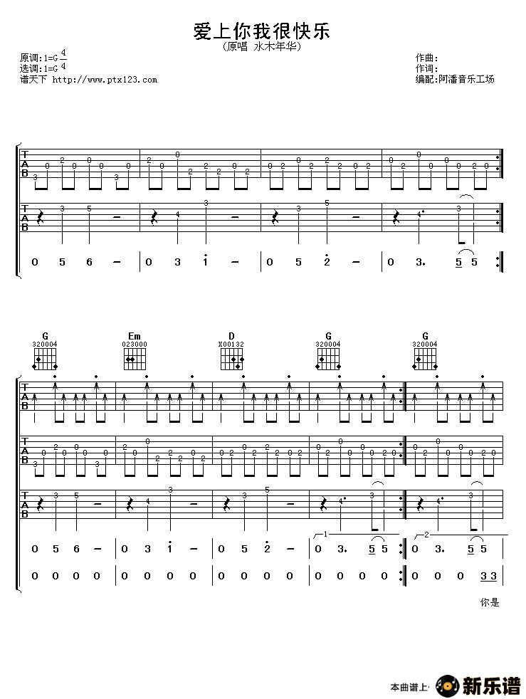 《爱上你我很快乐》最新曲谱 水木年华