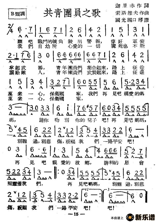 共青团员之歌最新曲谱
