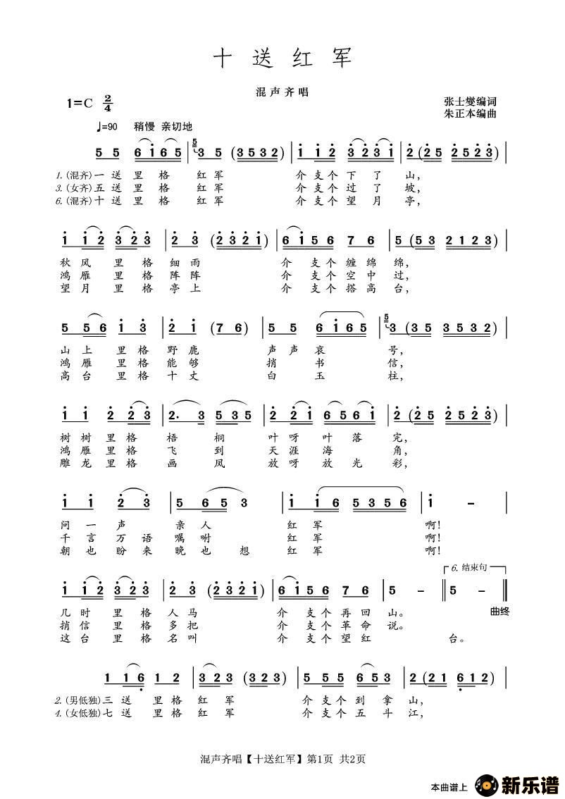 江西民歌演唱的十送红军歌词,十送红军最新曲谱.