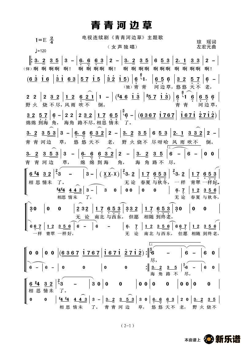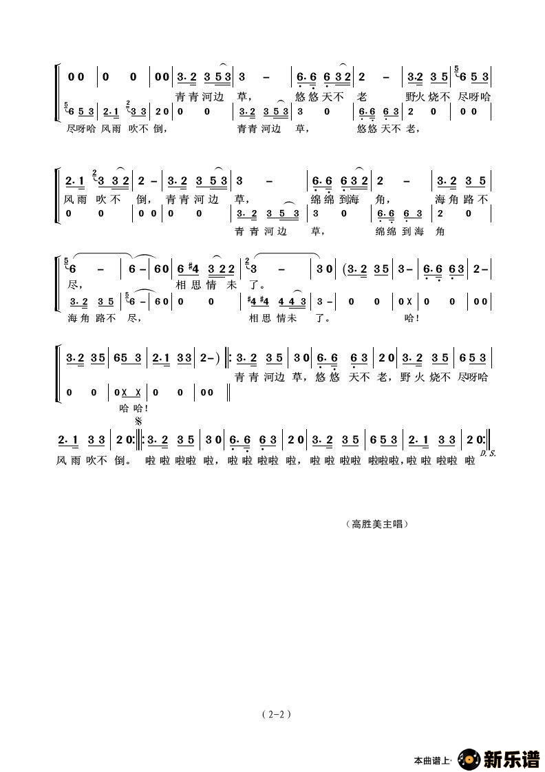 《青青河边草》最新曲谱 高胜美-君羊制谱