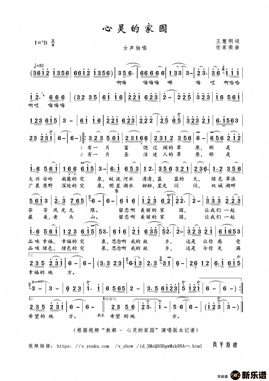 《心灵的家园》最新曲谱 敖都-君羊制谱