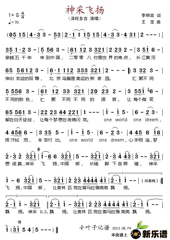 神采飞扬最新曲谱