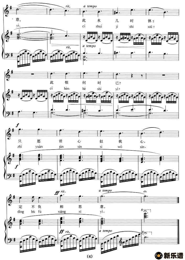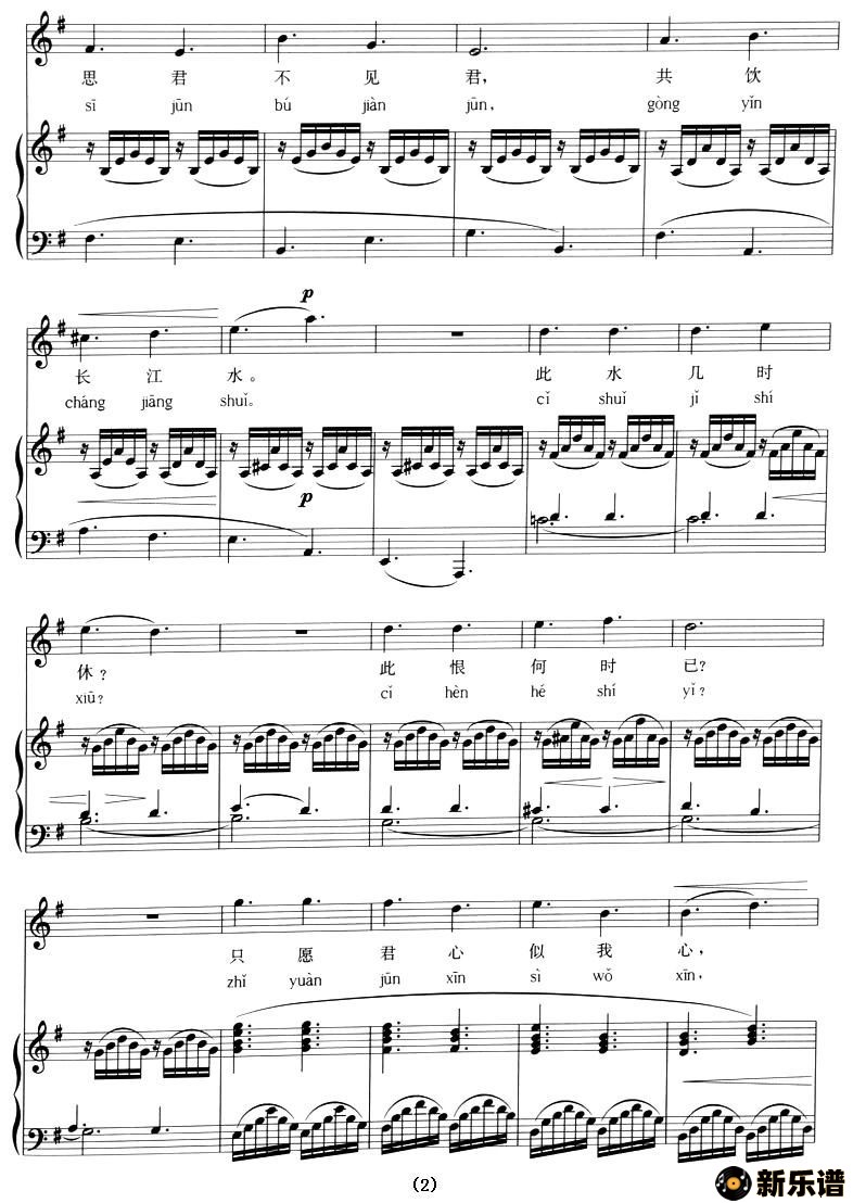 《我住长江头》最新曲谱