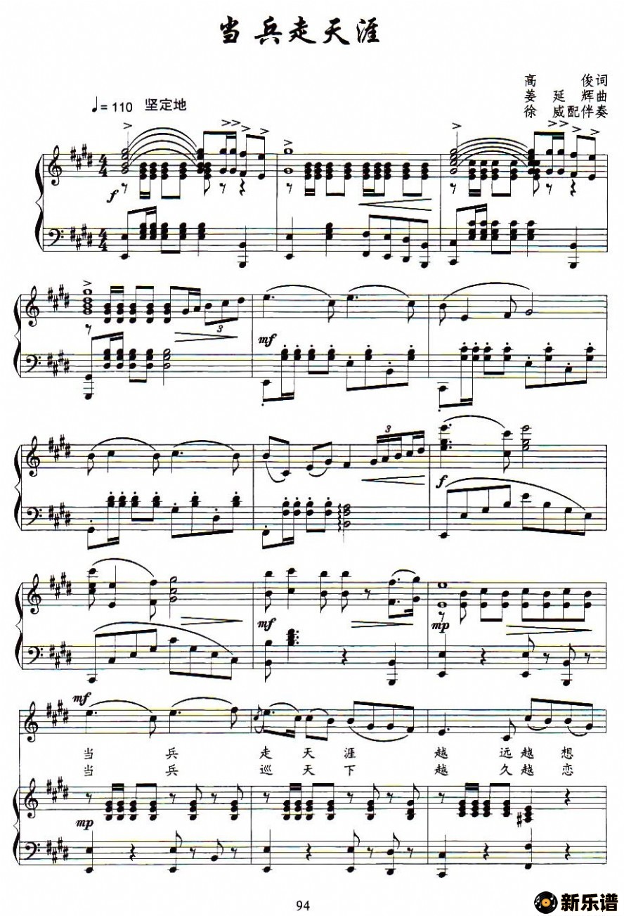 阎维文演唱的当兵走天涯歌词,当兵走天涯最新曲谱.