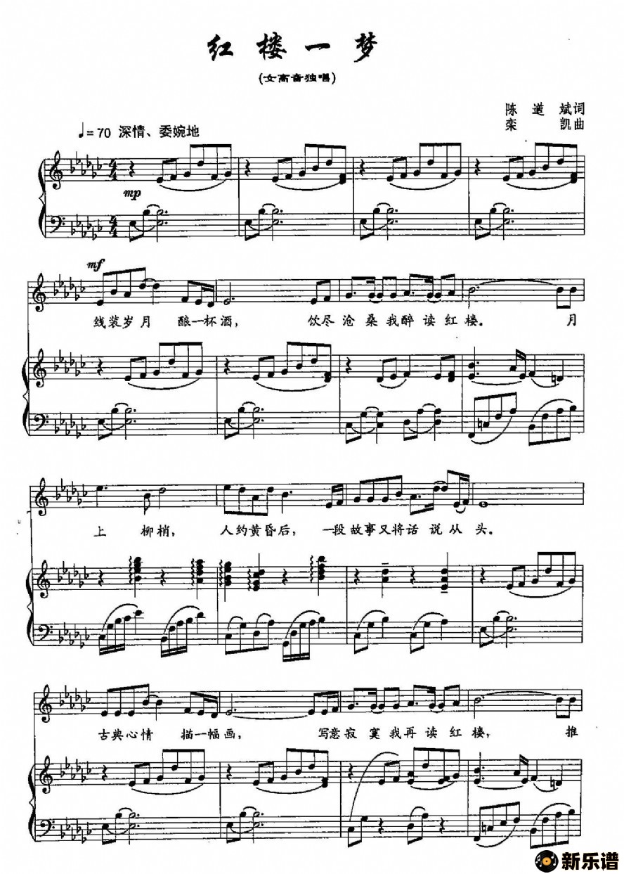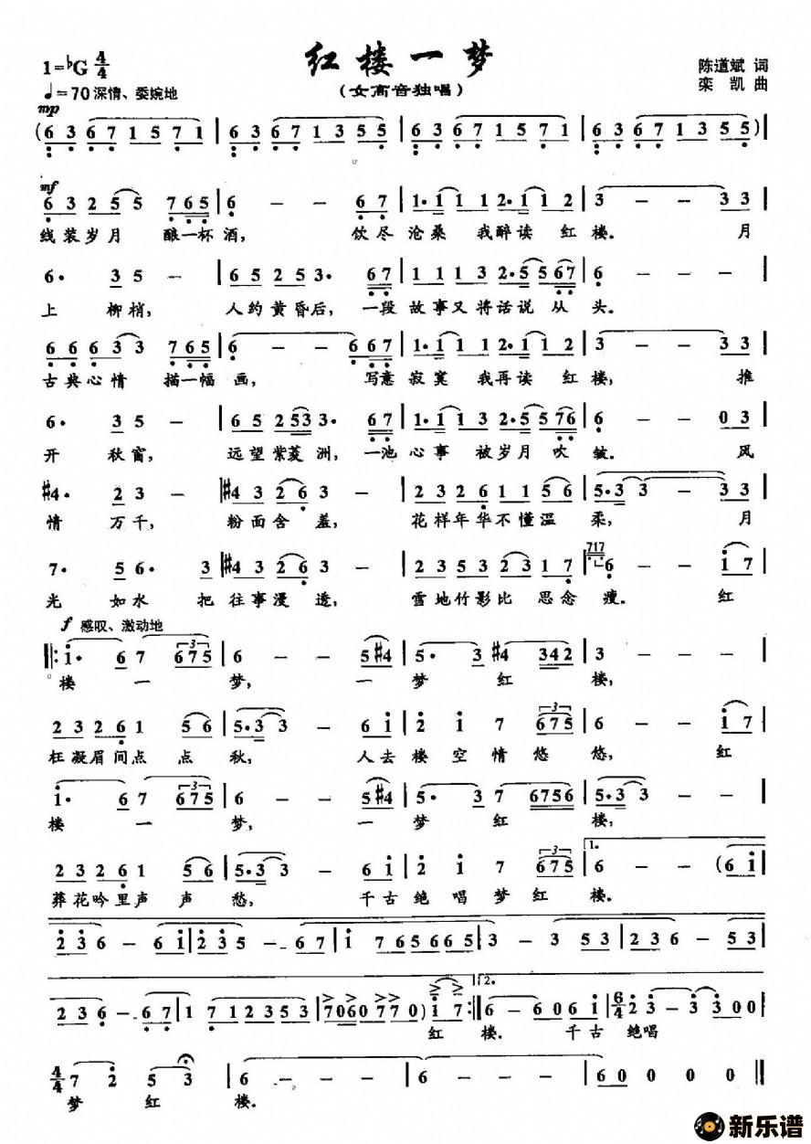 演唱的红楼一梦歌词,红楼一梦最新曲谱.