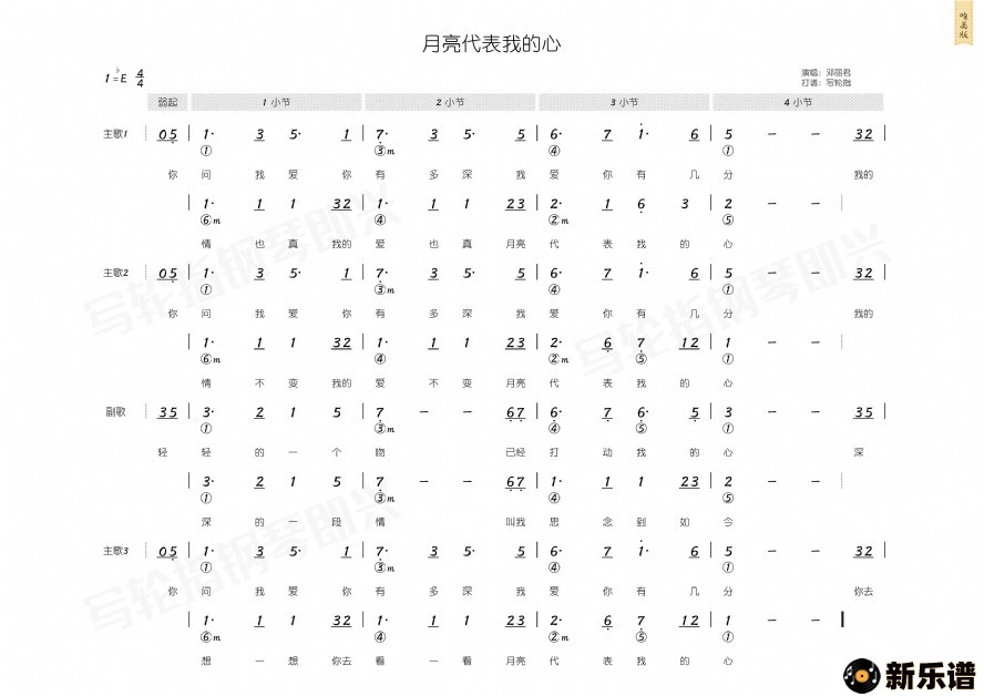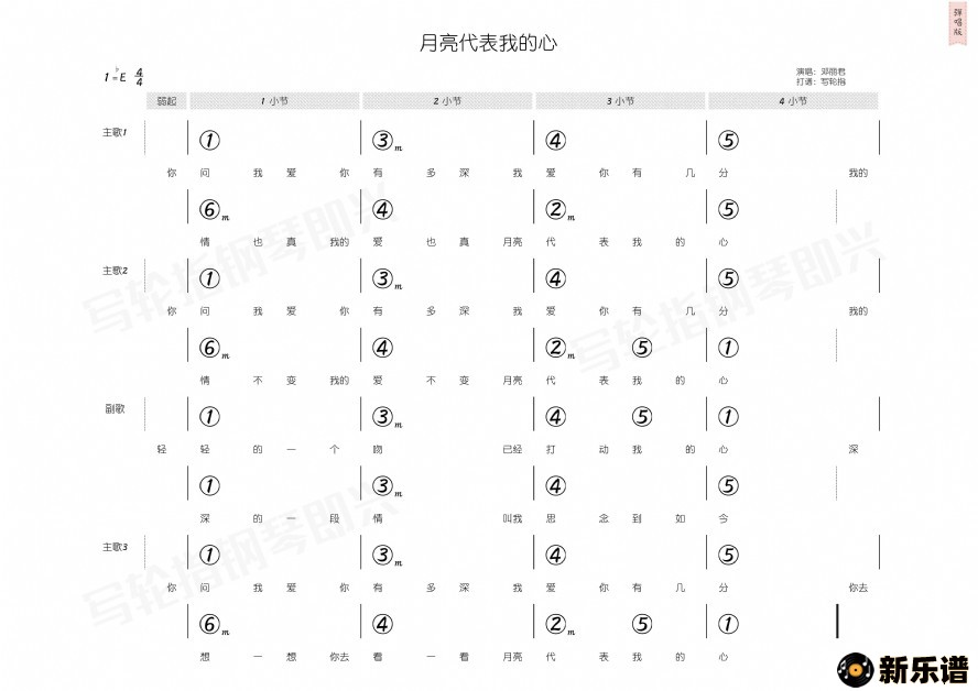 《月亮代表我的心》最新曲谱 邓丽君