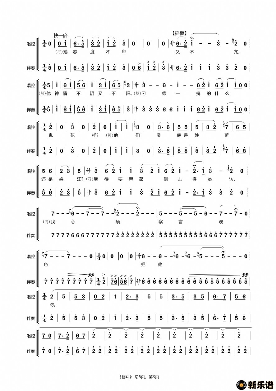 佚名演唱的智斗-京剧伴奏谱歌词,智斗-京剧伴奏谱最新曲谱.