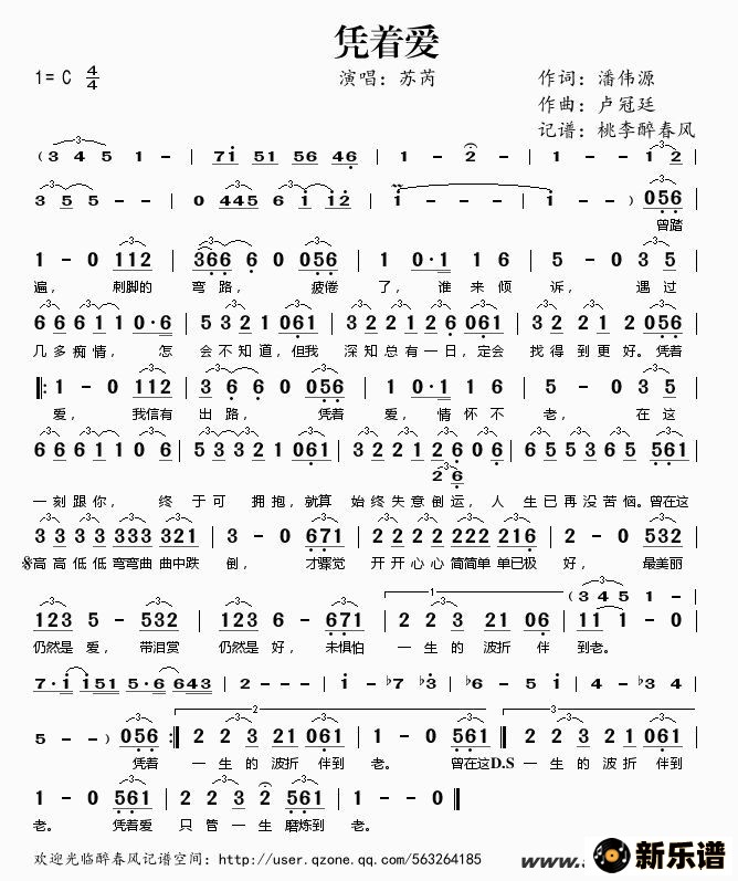《凭着爱》最新曲谱 苏芮-桃李醉春风制谱