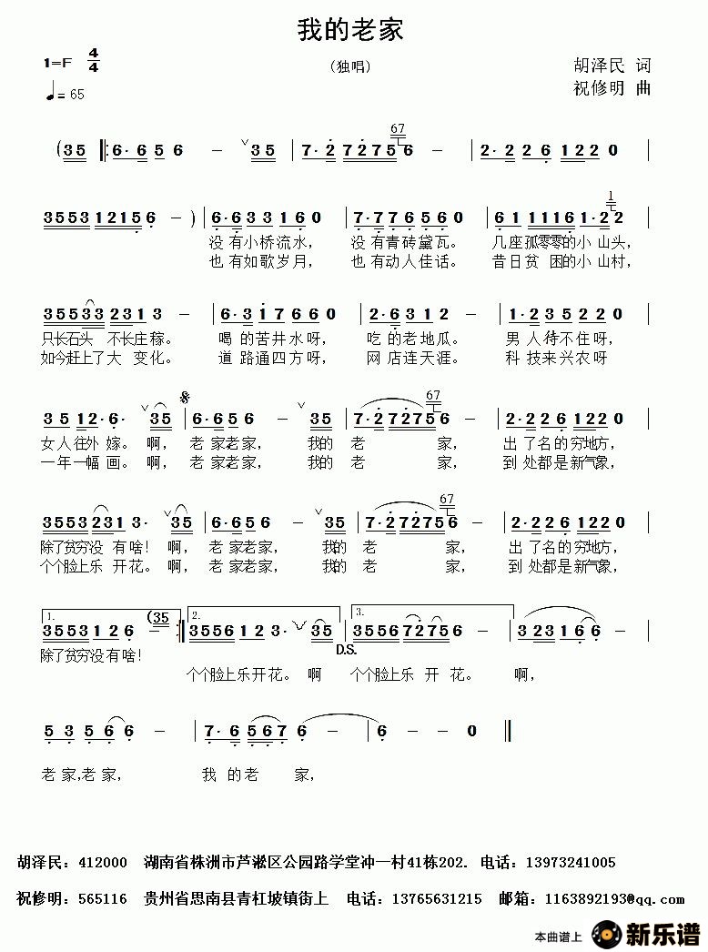 作词:胡泽民 作曲:祝修明(胡泽民词 祝修明曲)