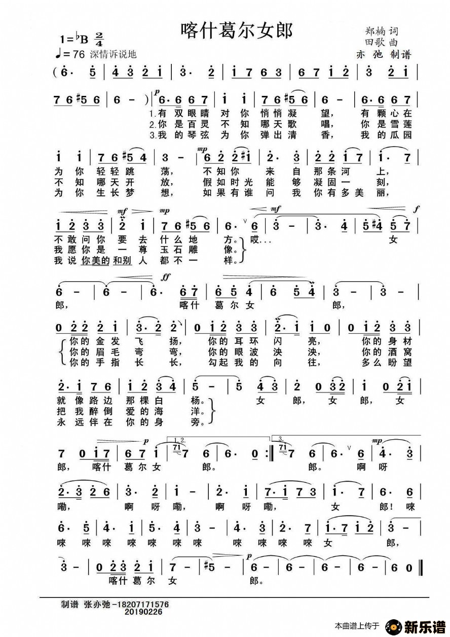 《喀什葛尔女郎》最新曲谱 戴玉强