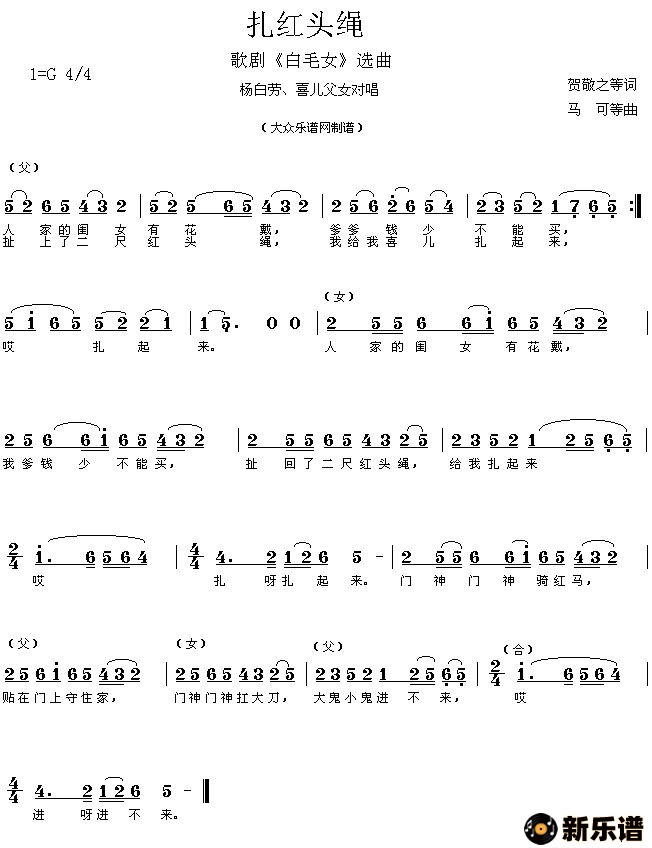 演唱的扎红头绳歌词,扎红头绳最新曲谱.