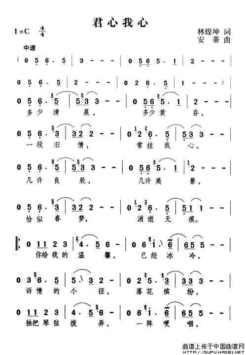 > 君心我心最新曲谱