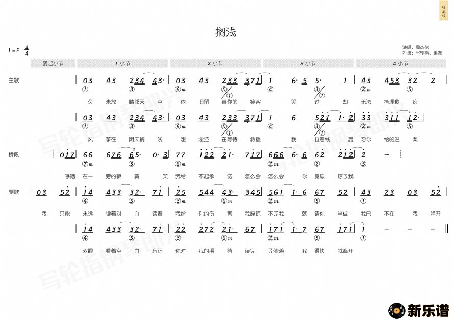 周杰伦演唱的搁浅歌词,搁浅最新曲谱.