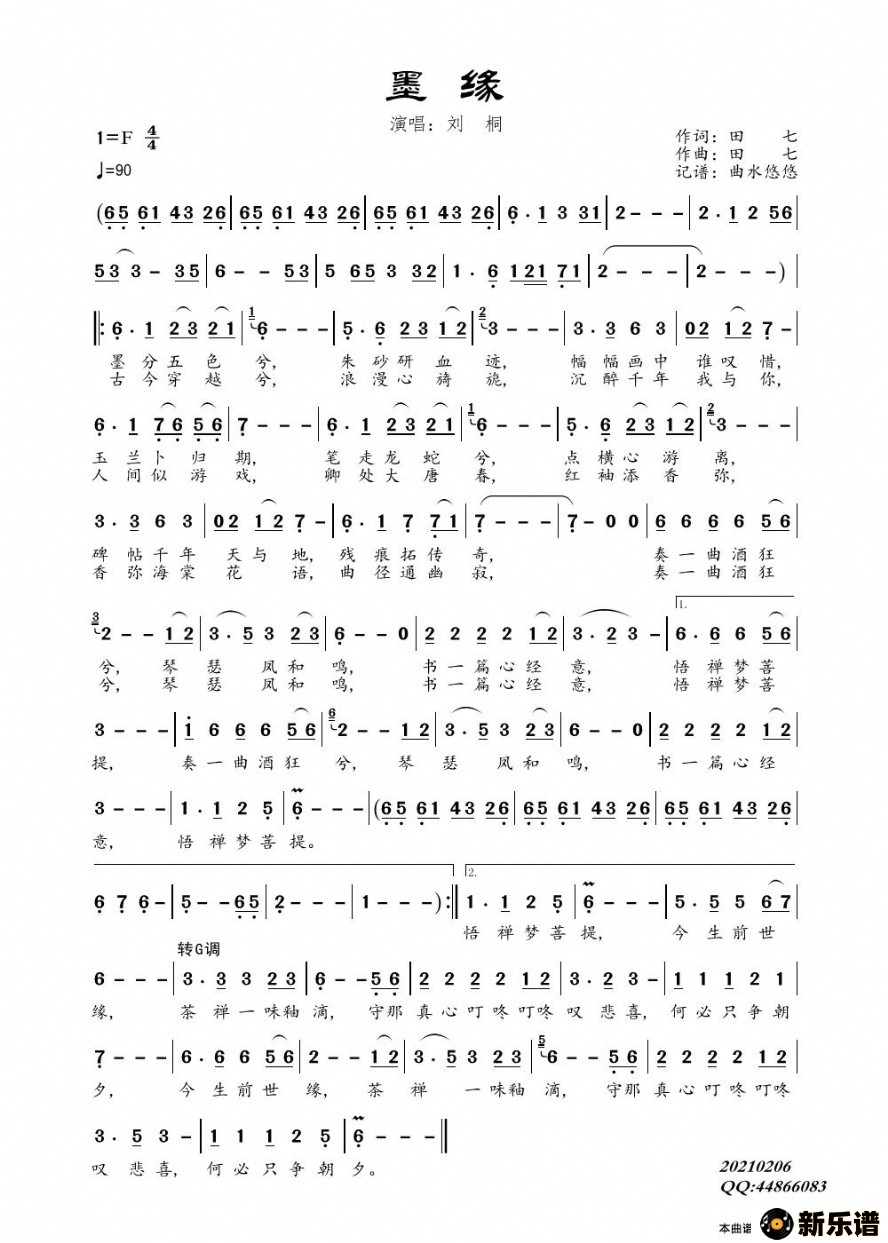 《墨缘》最新曲谱 刘桐-曲水悠悠制谱