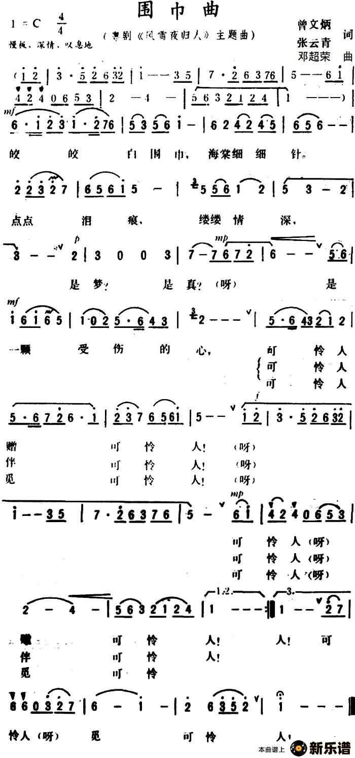 演唱的【粤曲】围巾曲 歌词,【粤曲】围巾曲 最新曲谱.