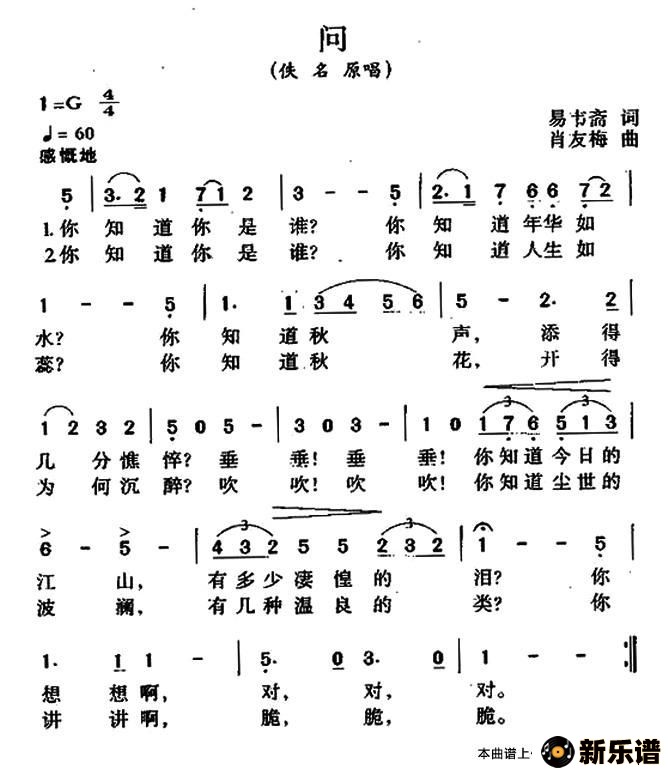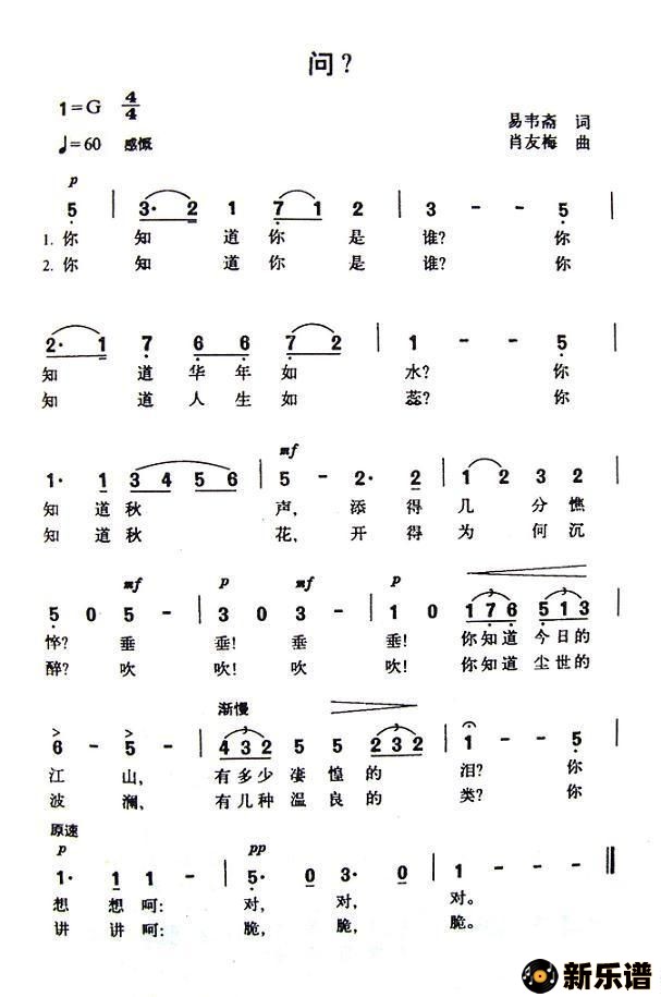 演唱的问?歌词,问?最新曲谱.