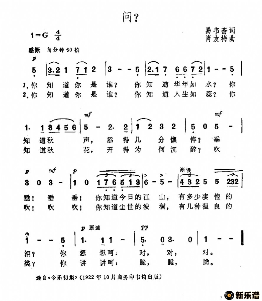 作词:易韦斋 作曲:肖友梅(易韦斋词 肖友梅曲)