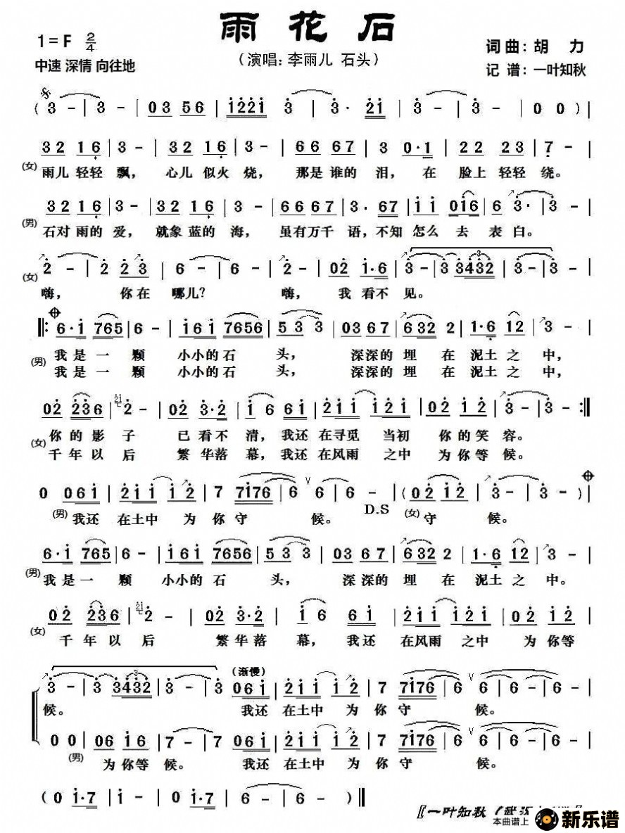 雨花石(电视剧《红红的雨花石》主题歌、合唱)最新曲谱