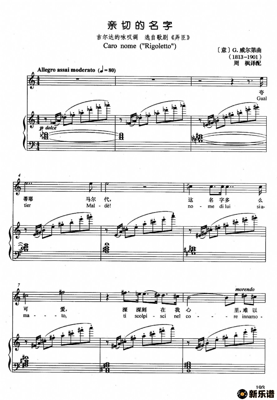 演唱的【意】亲切的名字歌词,【意】亲切的名字最新曲谱.