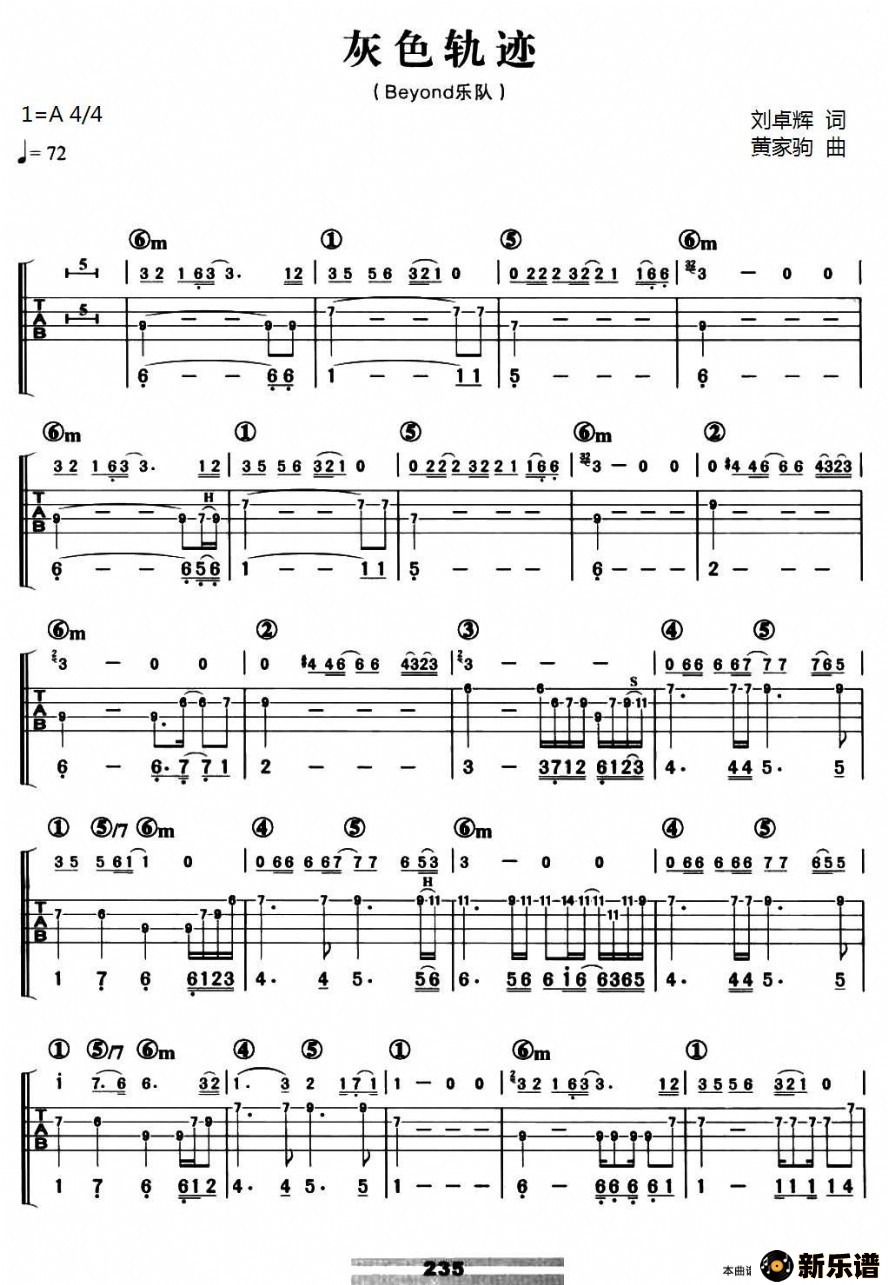 《灰色轨迹》最新曲谱 Beyond